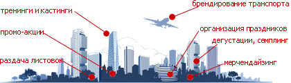 Агентство «BTL ПРОМОУШЕН» – это команда опытных рекламистов, имеющих большой опыт в проведении рекламных мероприятий и имеющее свои представительства на всей территории юго-восточной Украины : Запорожье, Днепропетровск, Мелитополь, Кривой Рог, Мариуполь, Донецк, Краматорск, Луганск и другие города.